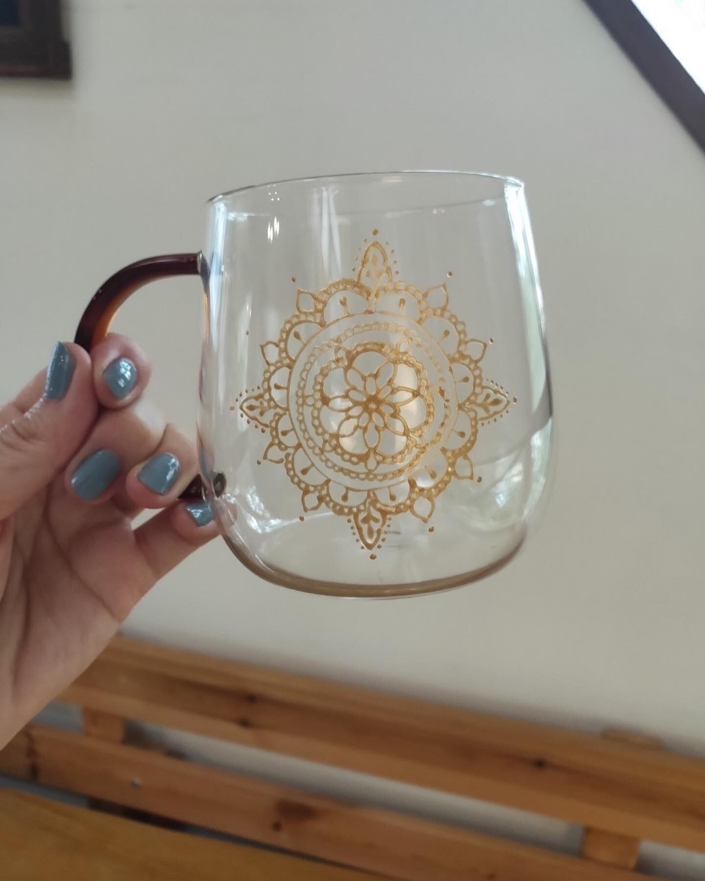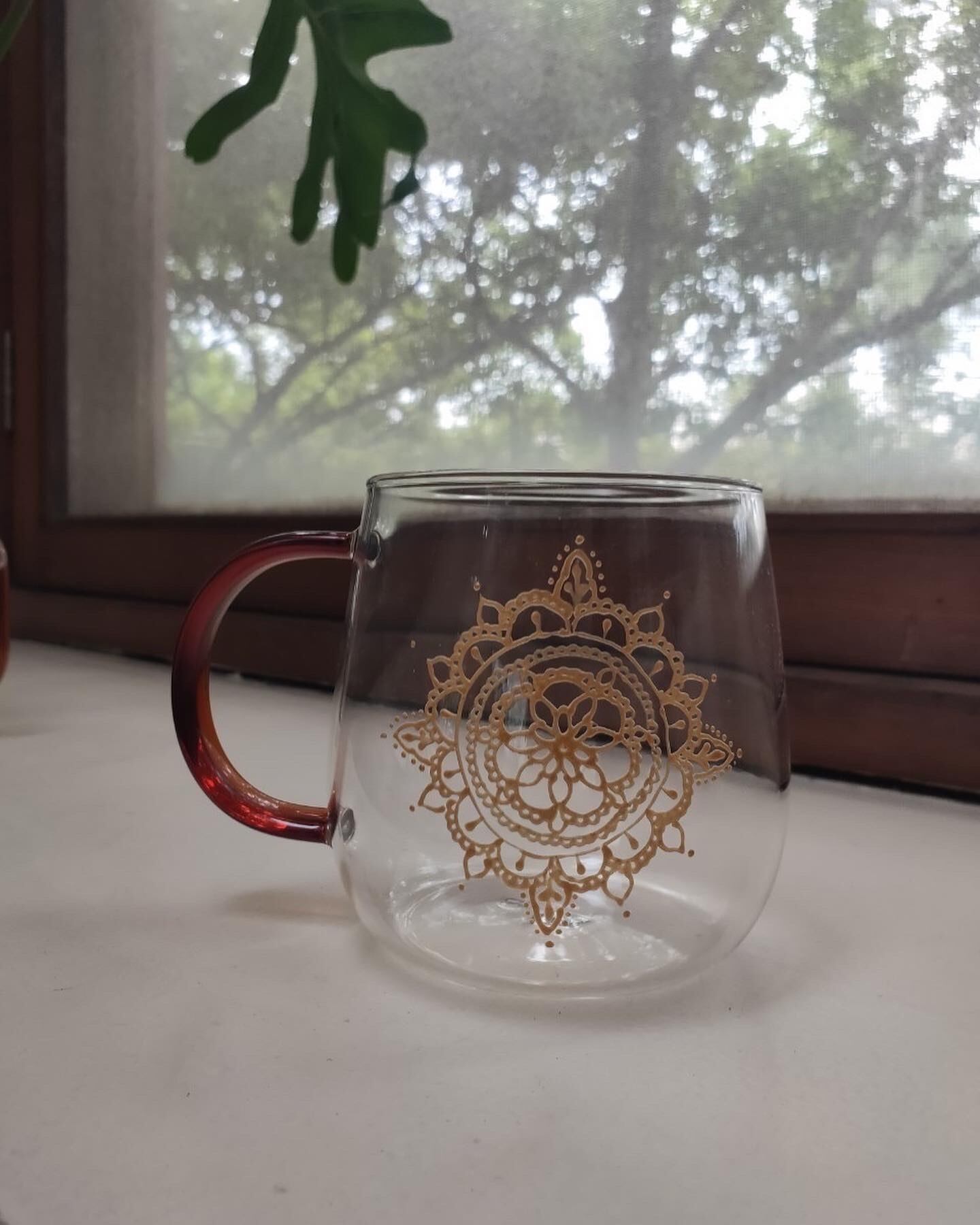 ガラスの外側には、メヘンディアートが施されており、デザインされた花々が柔らかな光を放ち、コーヒーやお茶を注ぐたびに柔らかな時間を楽しめます。飲み物の色合いを美しく引き立て華やかに彩ります。